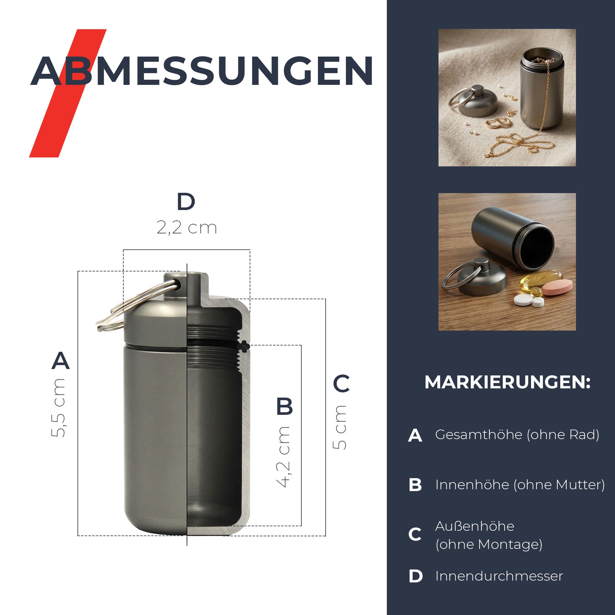 Das Etui besteht aus leichtem, aber sehr widerstandsfähigem Aluminium und eignet sich ideal für Arbeit, Reisen, Schießstand, Konzerte oder andere laute Umgebungen. Dank der kompakten Größe können Sie es bequem in der Tasche tragen oder an Schlüsseln, Rucksack oder Tasche befestigen, damit Ihre Ohrstöpsel immer griffbereit sind.